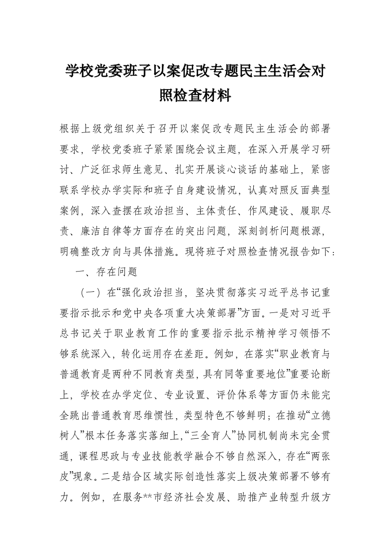首页材料汇编学校党委班子以案促改专题民主生活会对照检查材料