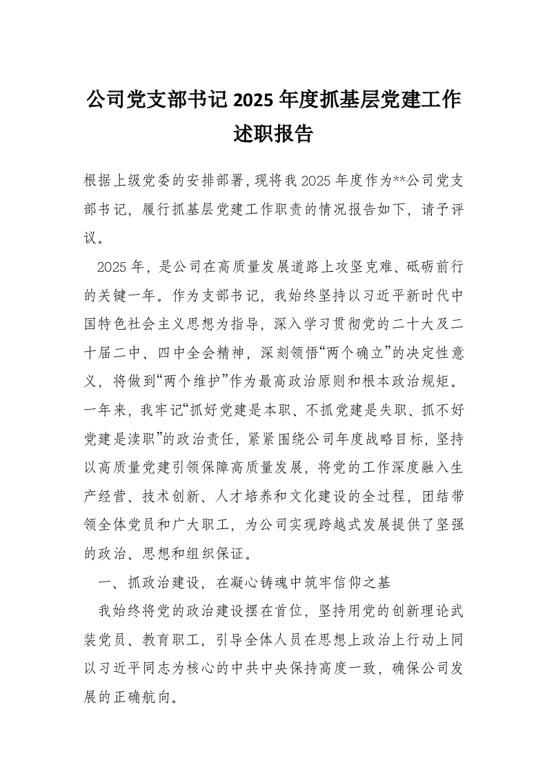 首页学习提升公司党支部书记2025年度抓基层党建工作述职报告