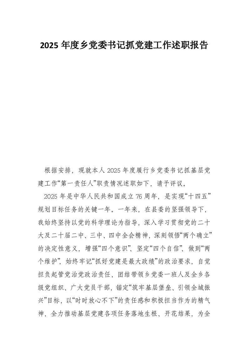 首页学习提升2025年度乡党委书记抓党建工作述职报告