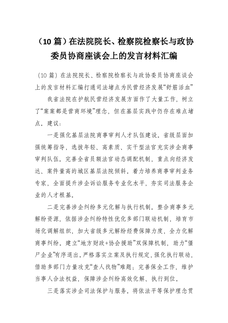 (10篇)在法院院长、检察院检察长与政协委员协商座谈会上的发言材料汇编