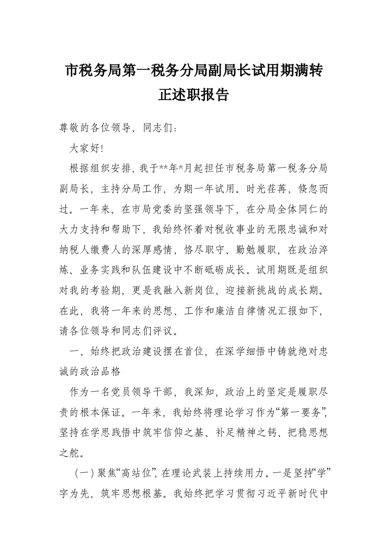 首页工作文档市税务局第一税务分局副局长试用期满转正述职报告