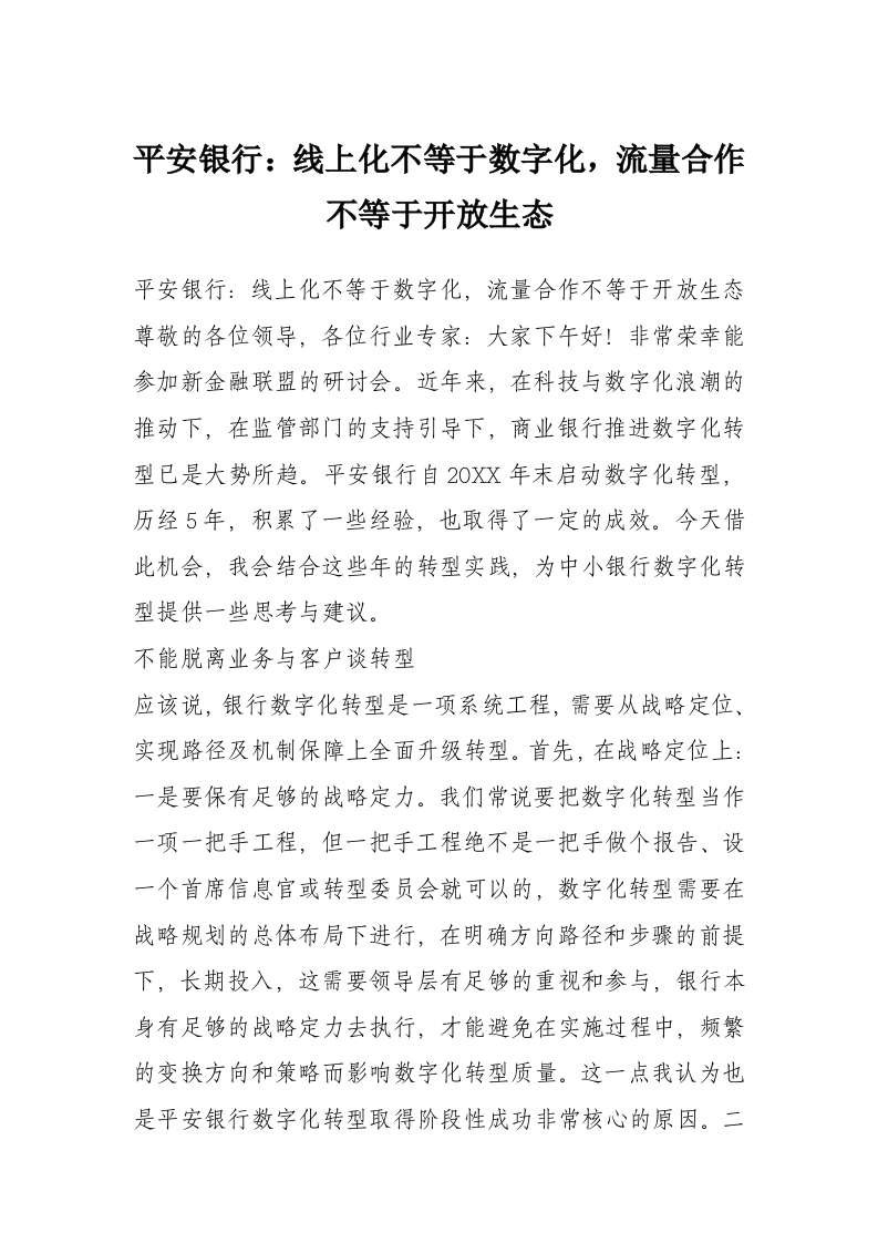 首页工作文档平安银行:线上化不等于数字化,流量合作不等于开放生态