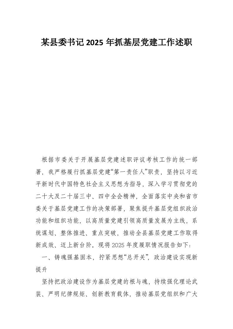 首页工作文档某县委书记2025年抓基层党建工作述职