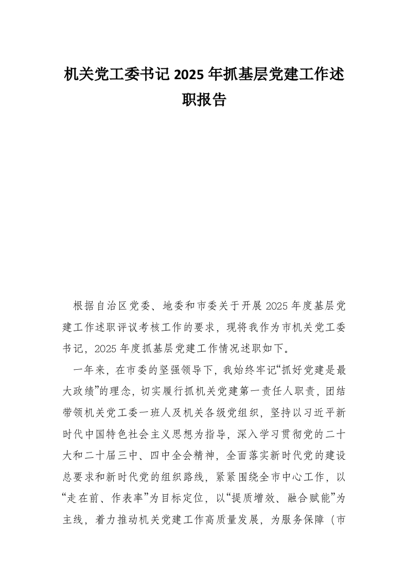 首页工作文档机关党工委书记2025年抓基层党建工作述职报告