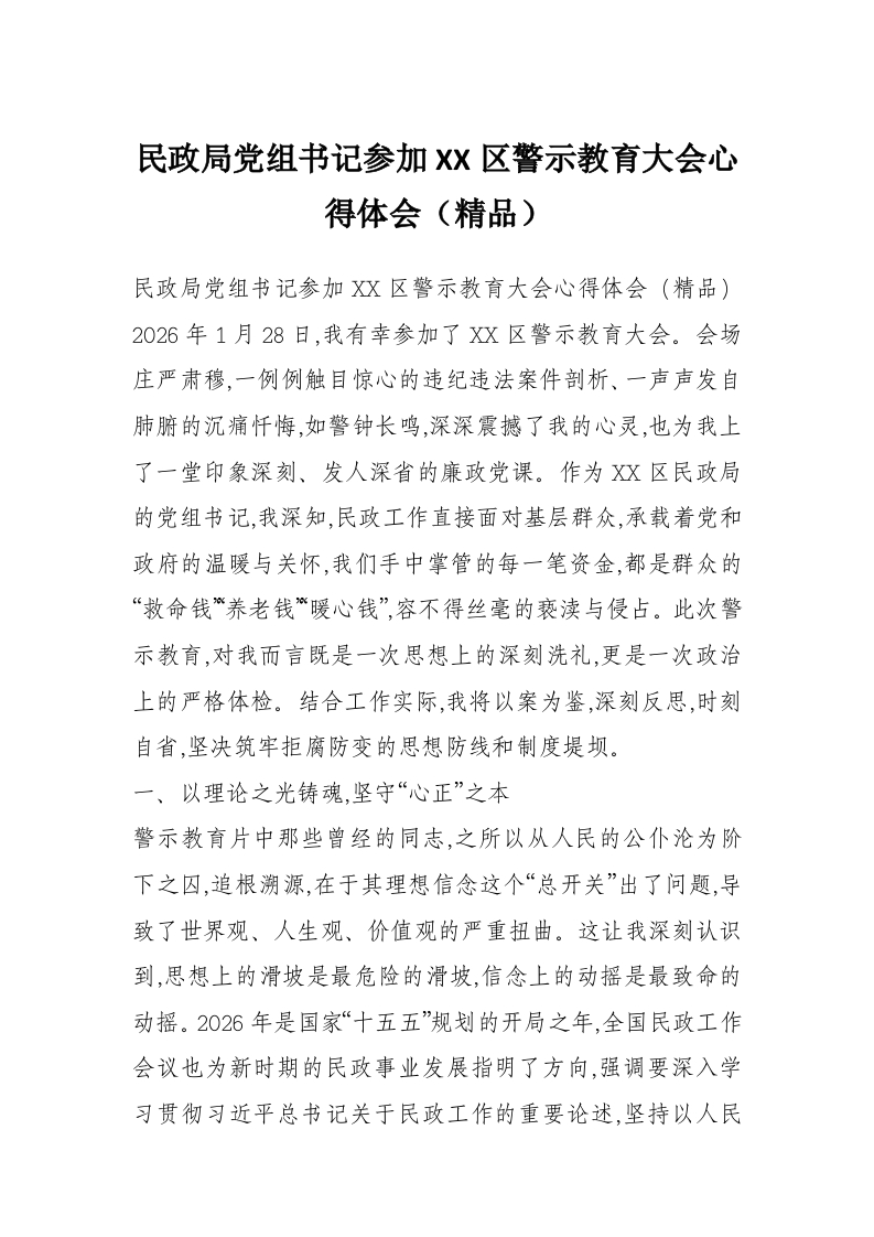 民政局党组书记参加XX区警示教育大会心得体会(精品)