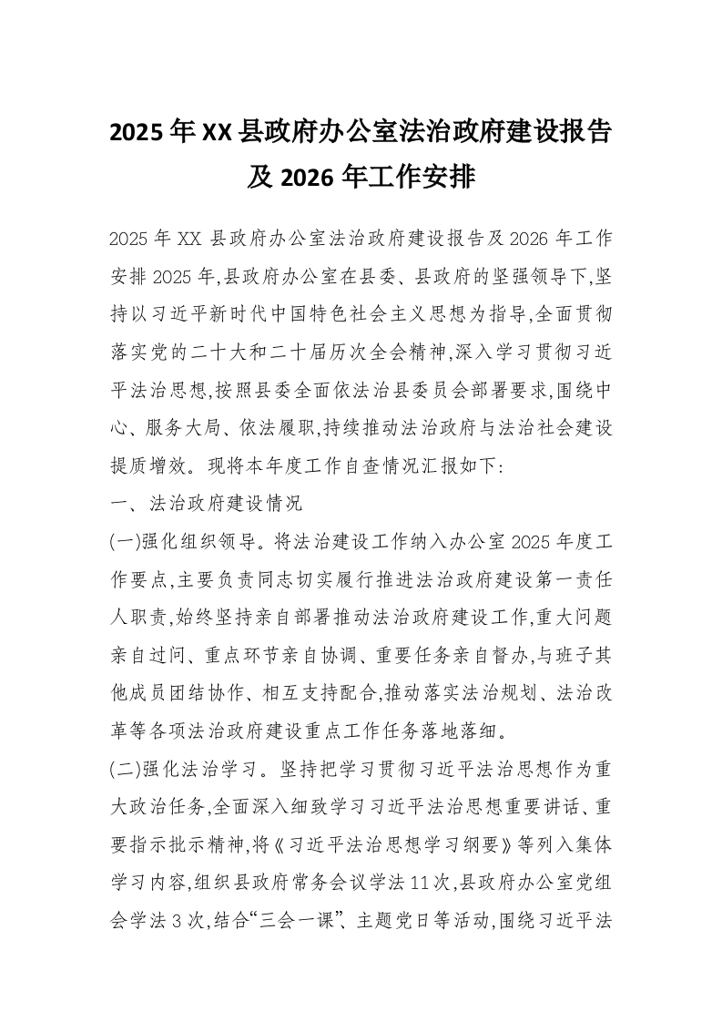 2025年XX县***办公室法治***建设报告及2026年工作安排