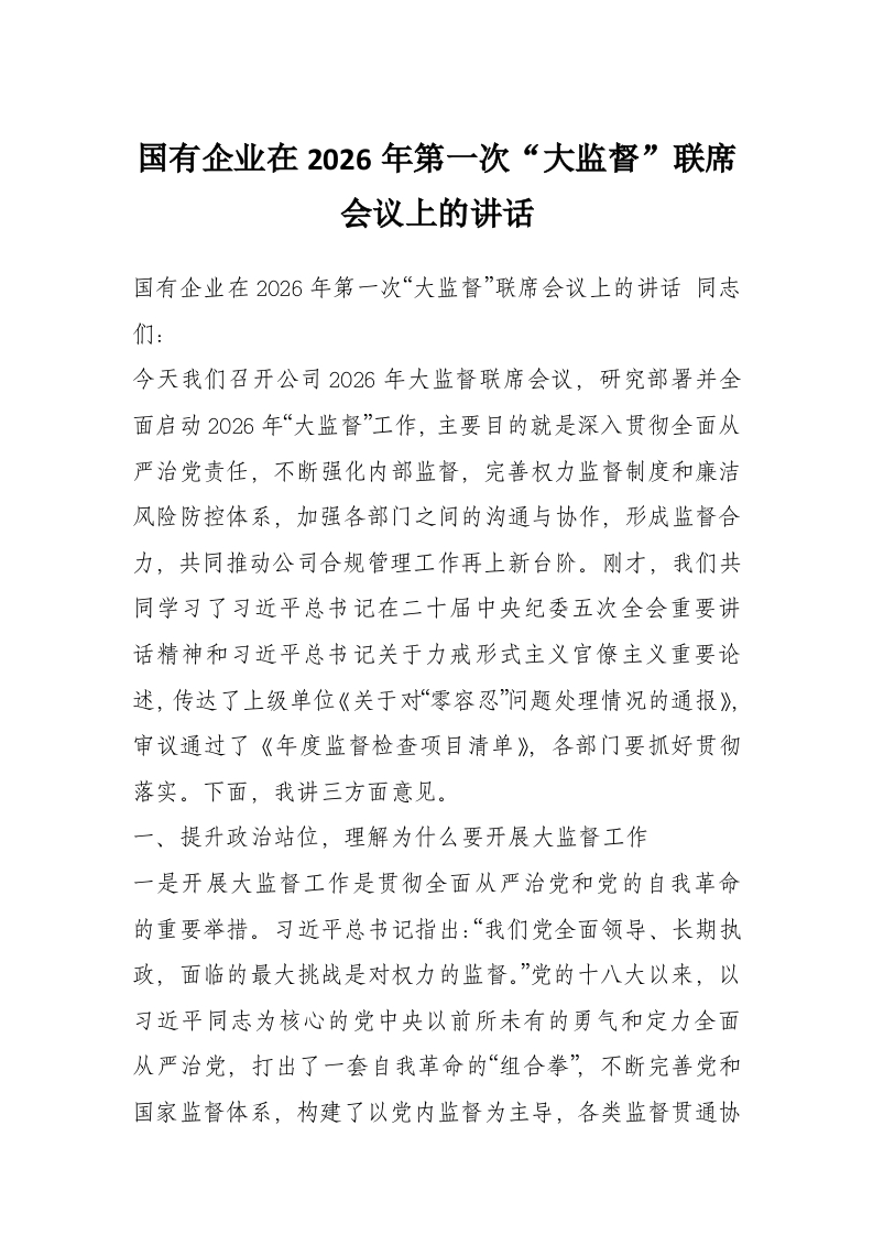国有企业在2026年第一次“大监督”联席会议上的讲话