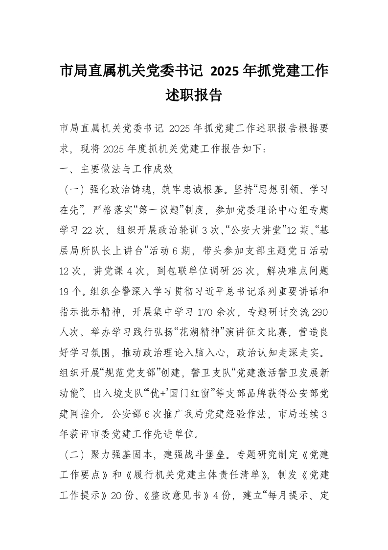 市局直属机关党委书记 2025年抓党建工作述职报告
