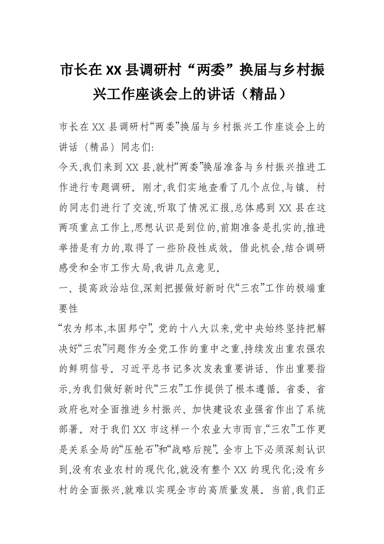 市长在XX县调研村“两委”换届与乡村振兴工作座谈会上的讲话(精品)