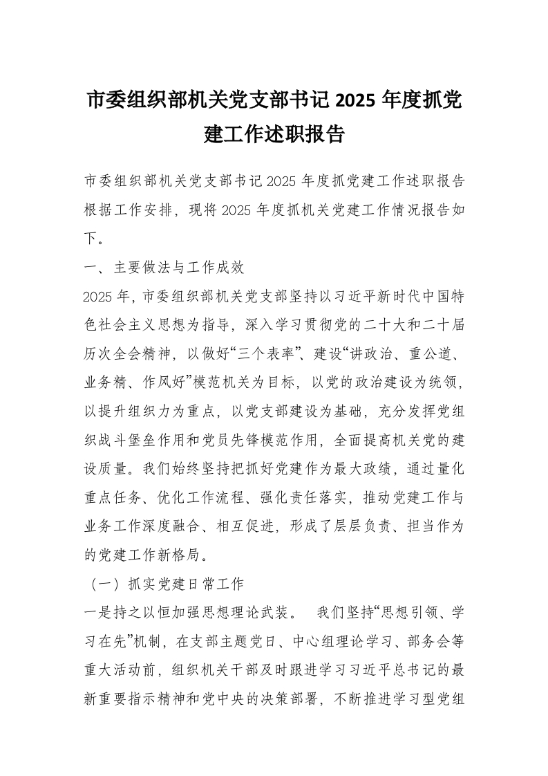 市委组织部机关党支部书记2025年度抓党建工作述职报告
