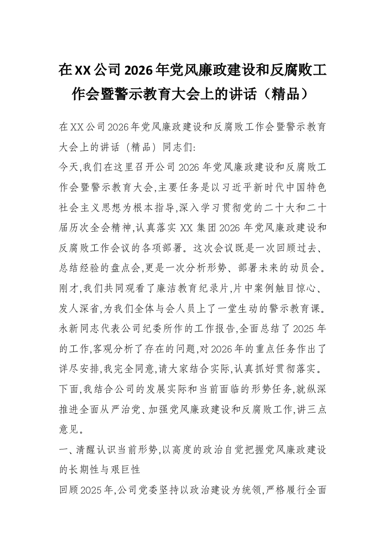 在XX公司2026年党风廉政建设和反腐败工作会暨警示教育大会上的讲话(精品)