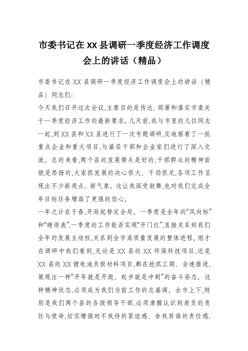 市委书记在XX县调研一季度经济工作调度会上的讲话(精品)
