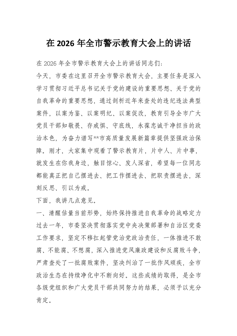 首页材料汇编在2026年全市警示教育大会上的讲话