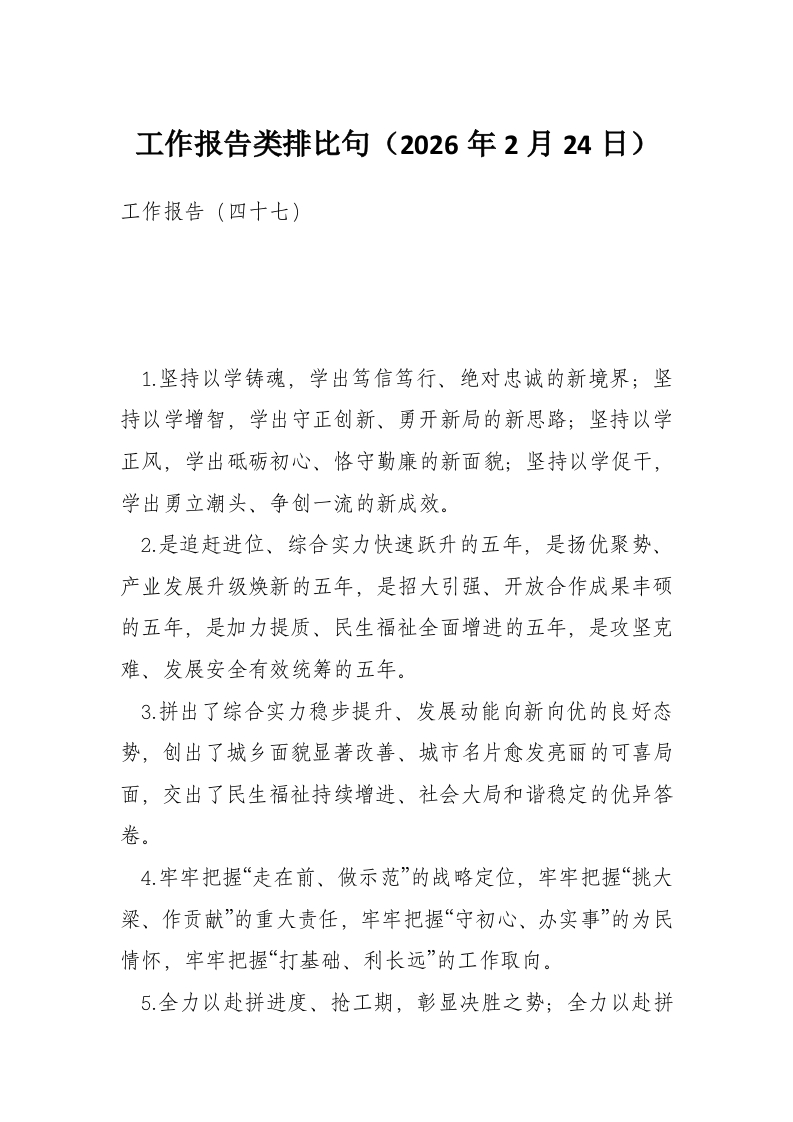 工作报告类排比句(2026年2月24日)