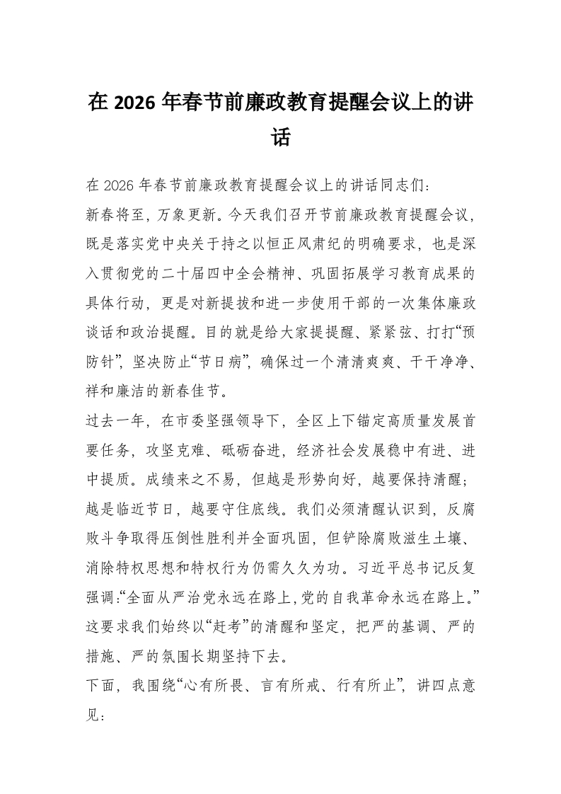 首页学习提升在2026年春节前廉政教育提醒会议上的讲话