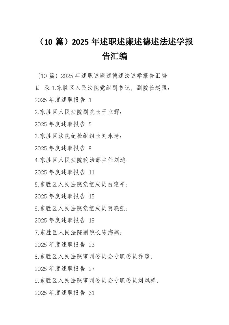 (10篇)2025年述职述廉述德述法述学报告汇编
