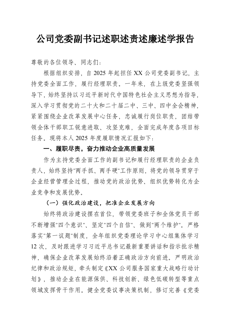 首页讲课讲稿公司党委副书记述职述责述廉述学报告