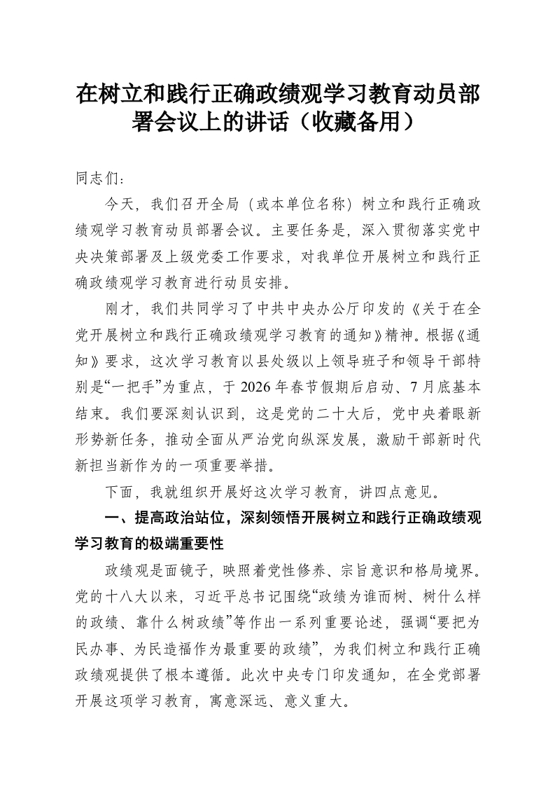在树立和践行正确政绩观学习教育动员部署会议上的讲话(收藏备用)