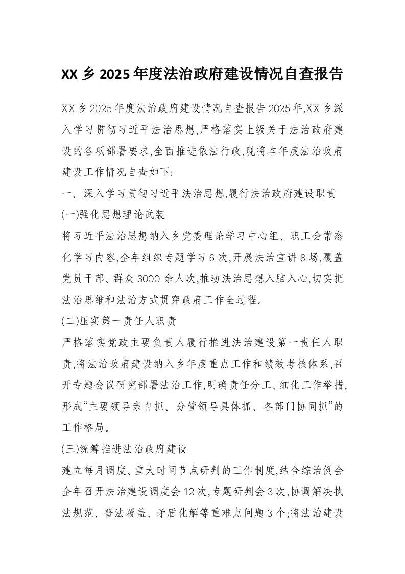 首页写作素材XX乡2025年度法治***建设情况自查报告