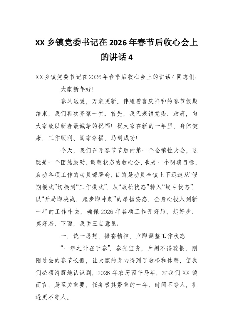 XX乡镇党委书记在2026年春节后收心会上的讲话4