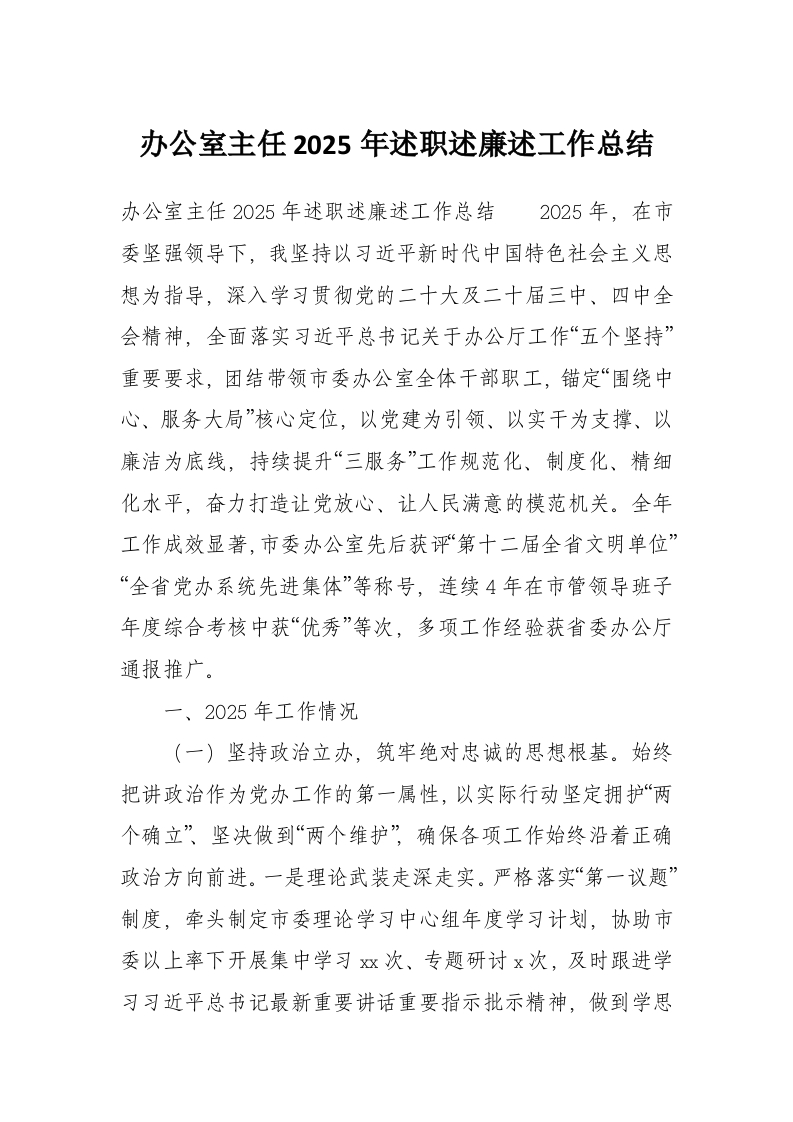 首页写作素材办公室主任2025年述职述廉述工作总结