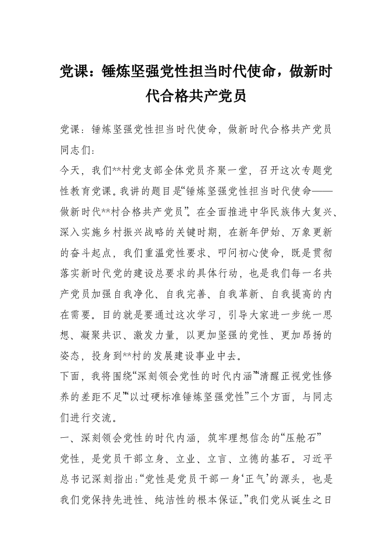 首页写作素材党课:锤炼坚强党性担当时代使命,做新时代合格***员