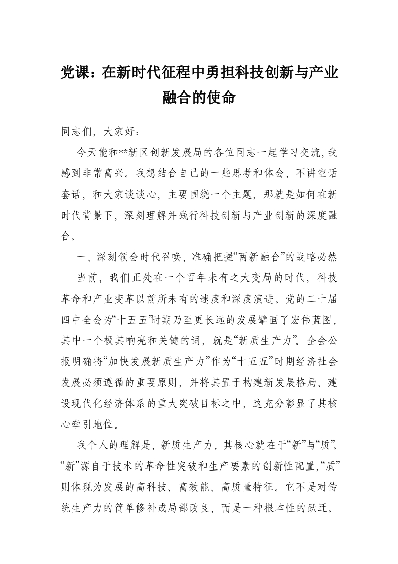 党课:在新时代征程中勇担科技创新与产业融合的使命
