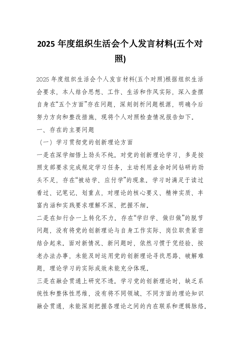 首页材料汇编2025年度组织生活会个人发言材料(五个对照)