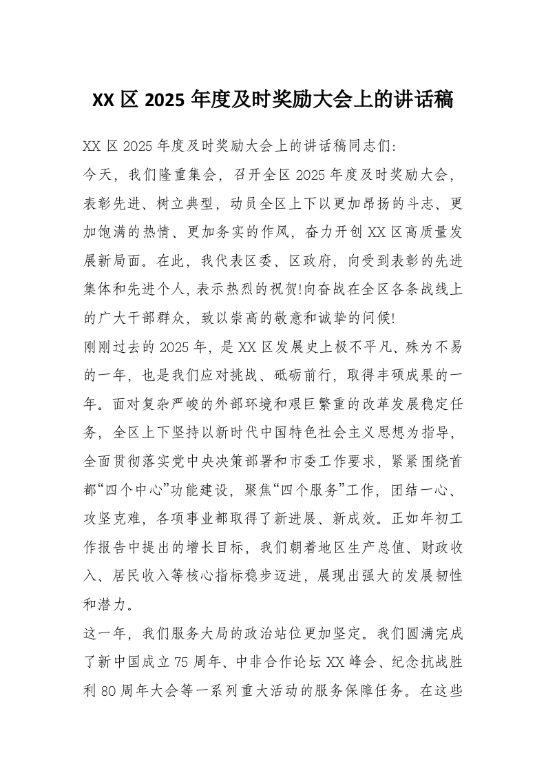 首页材料汇编XX区2025年度及时奖励大会上的讲话稿
