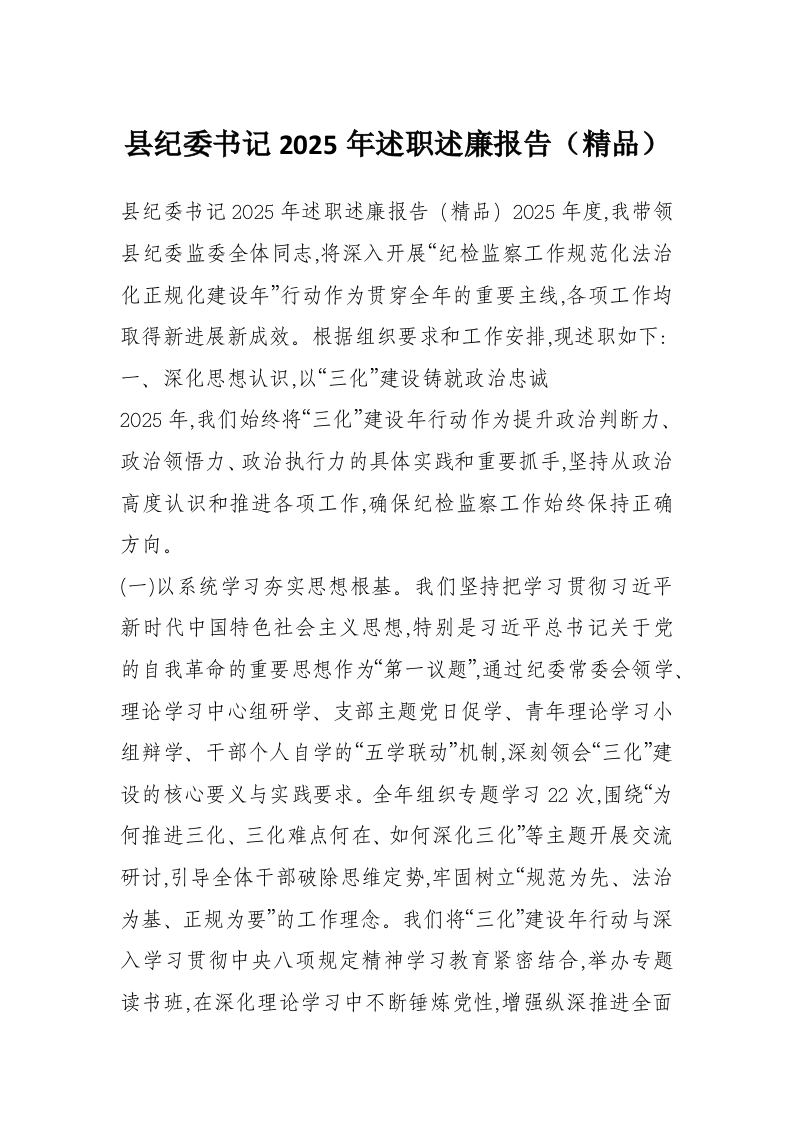 县纪委书记2025年述职述廉报告(精品)