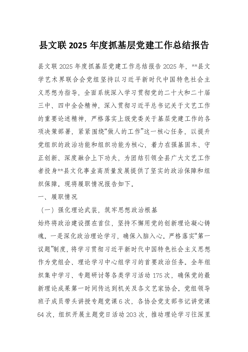 首页学习提升县文联2025年度抓基层党建工作总结报告
