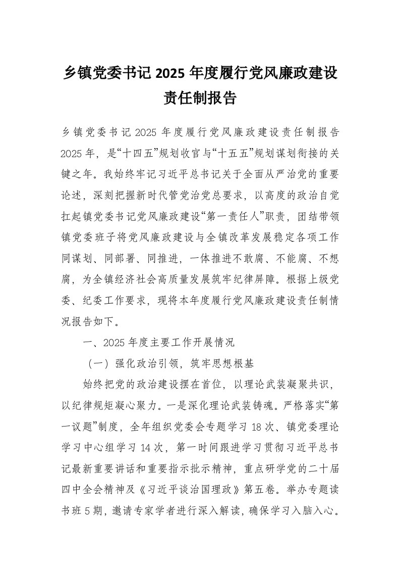 乡镇党委书记2025年度履行党风廉政建设责任制报告