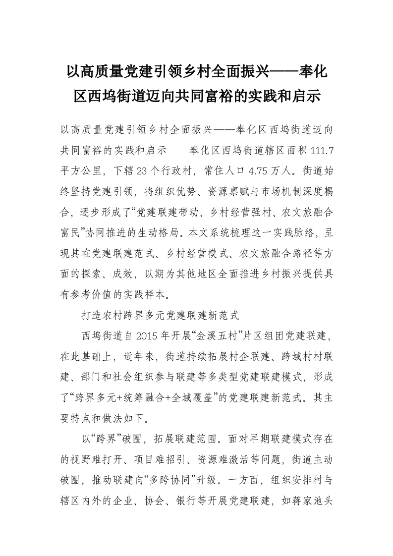 以高质量党建引领乡村全面振兴——奉化区西坞街道迈向共同富裕的实践和启示