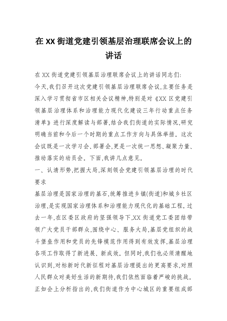 首页学习提升在XX街道党建引领基层治理联席会议上的讲话