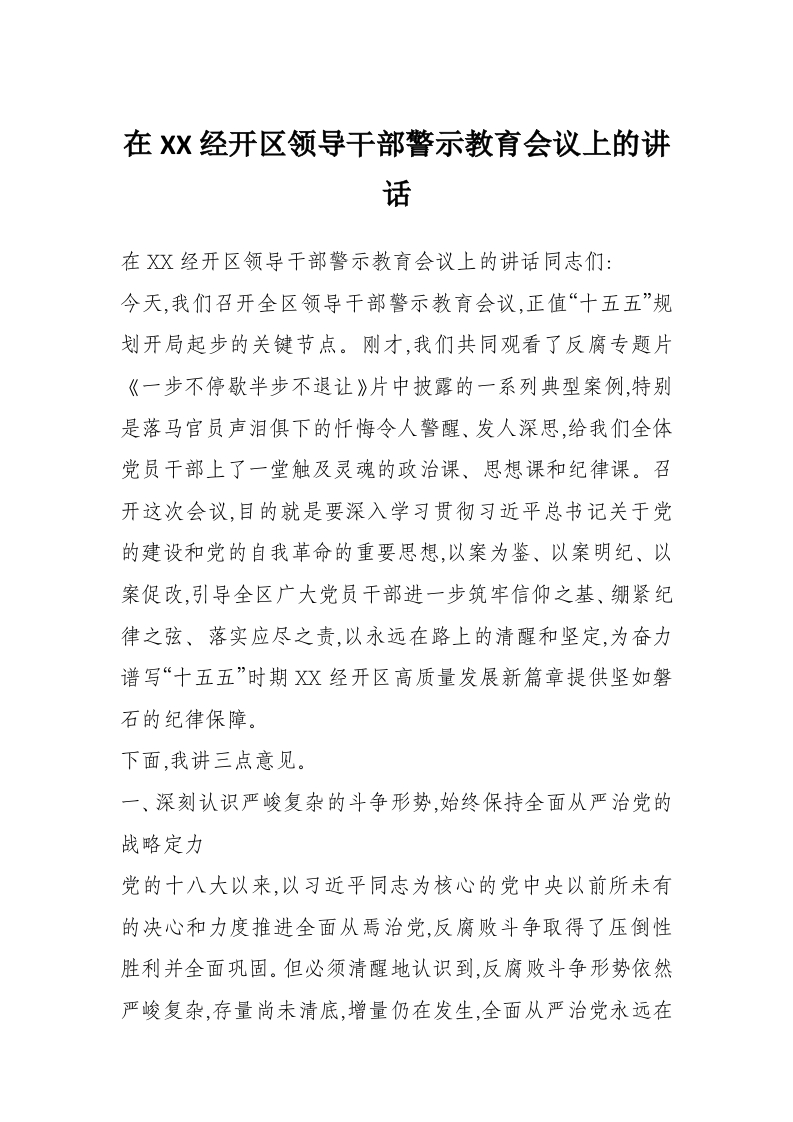 在XX经开区领导干部警示教育会议上的讲话