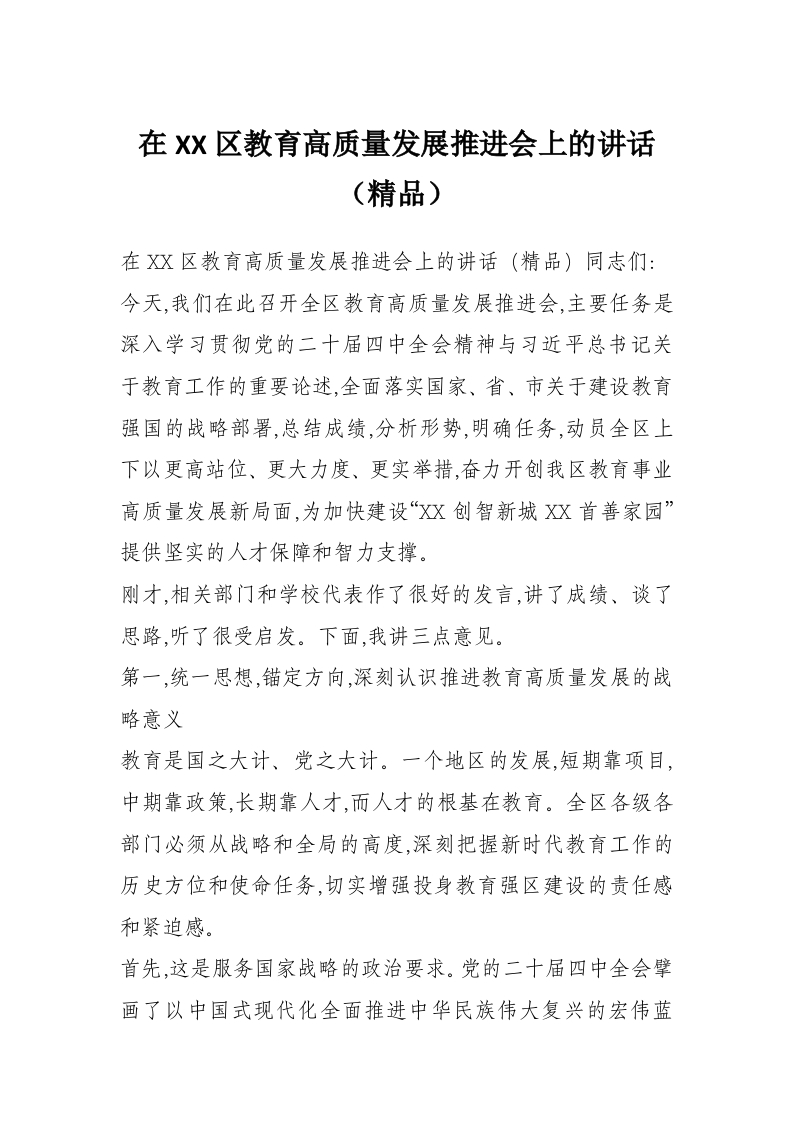 首页学习提升在XX区教育高质量发展推进会上的讲话(精品)