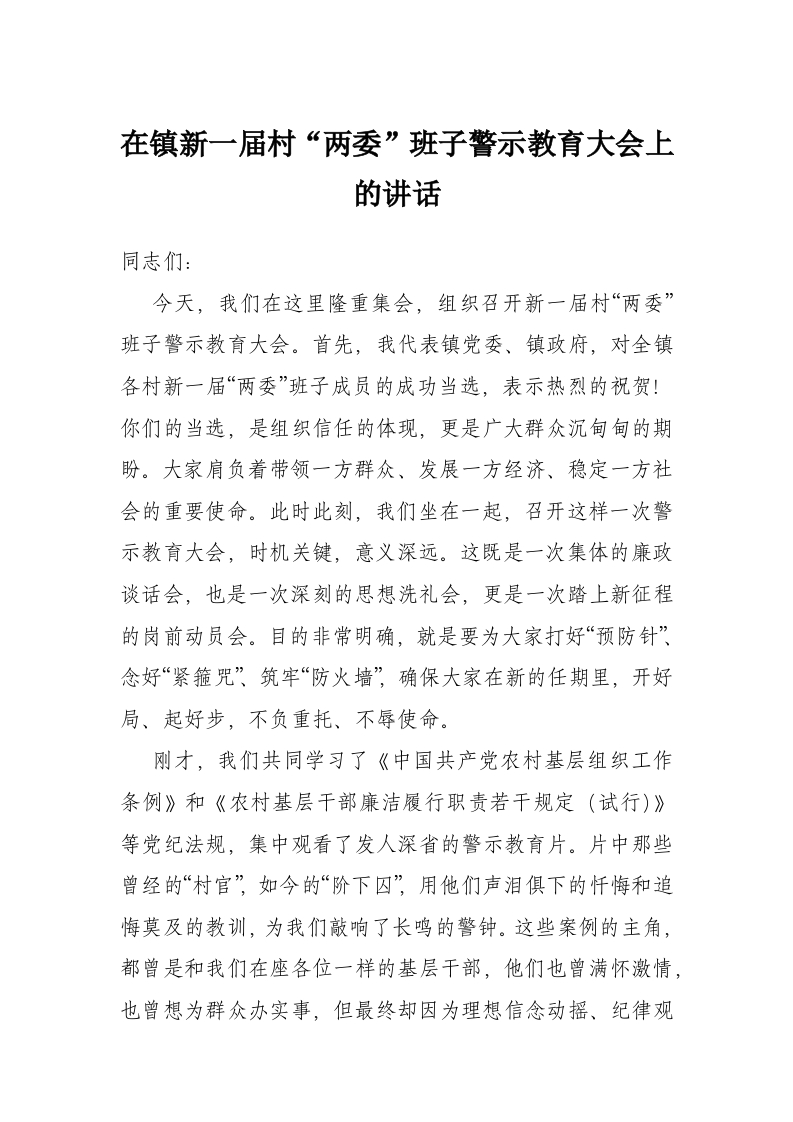 在镇新一届村“两委”班子警示教育大会上的讲话