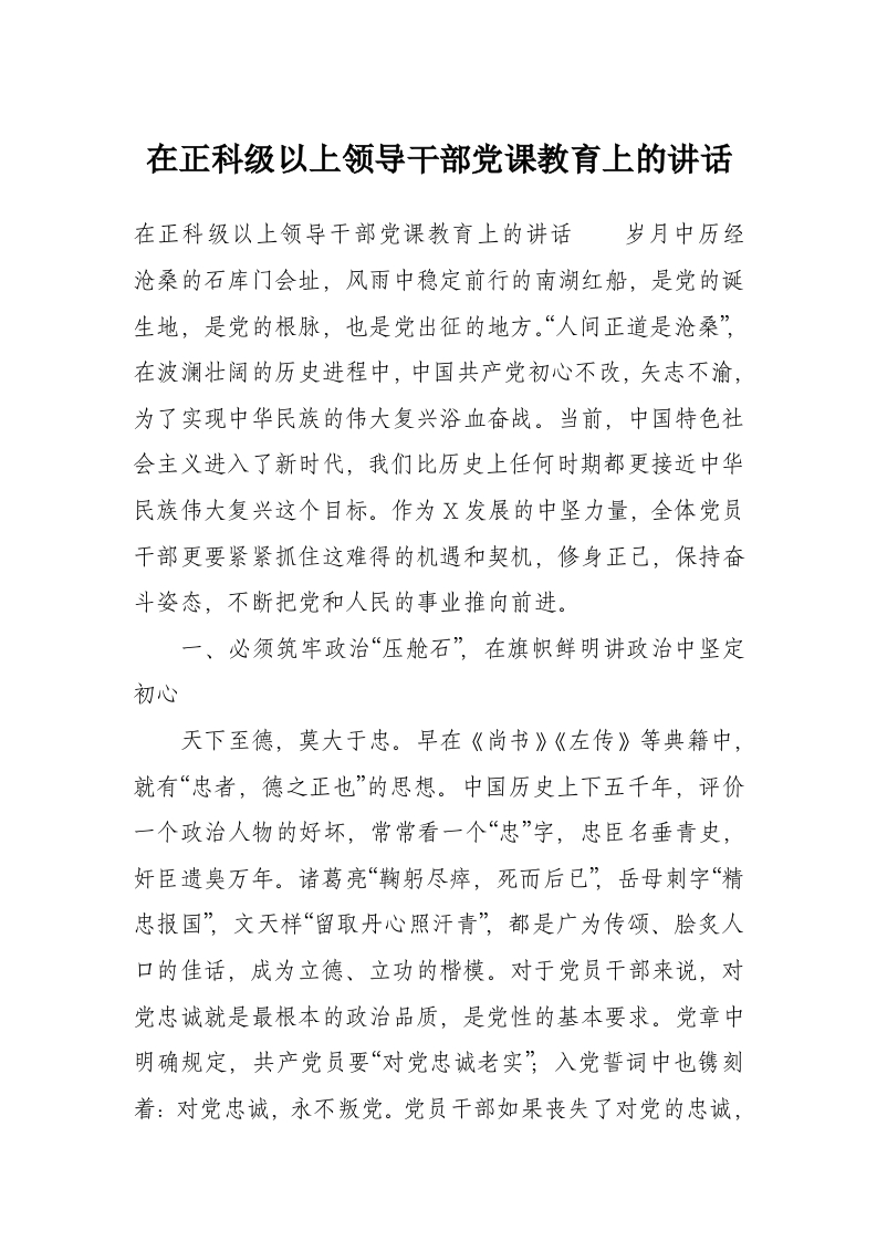 首页工作文档在正科级以上领导干部党课教育上的讲话