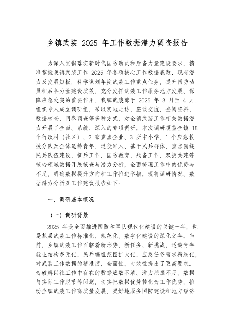 首页讲课讲稿乡镇武装2025年工作数据潜力调查报告