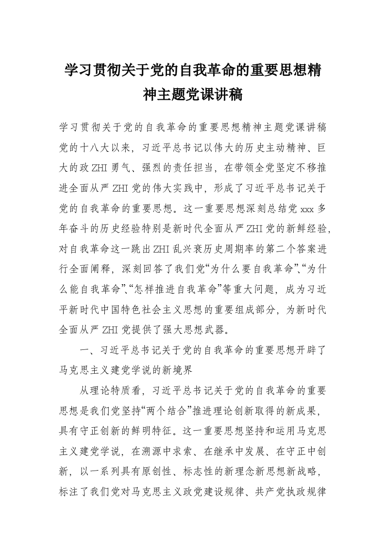 学习贯彻关于党的自我革命的重要思想精神主题党课讲稿