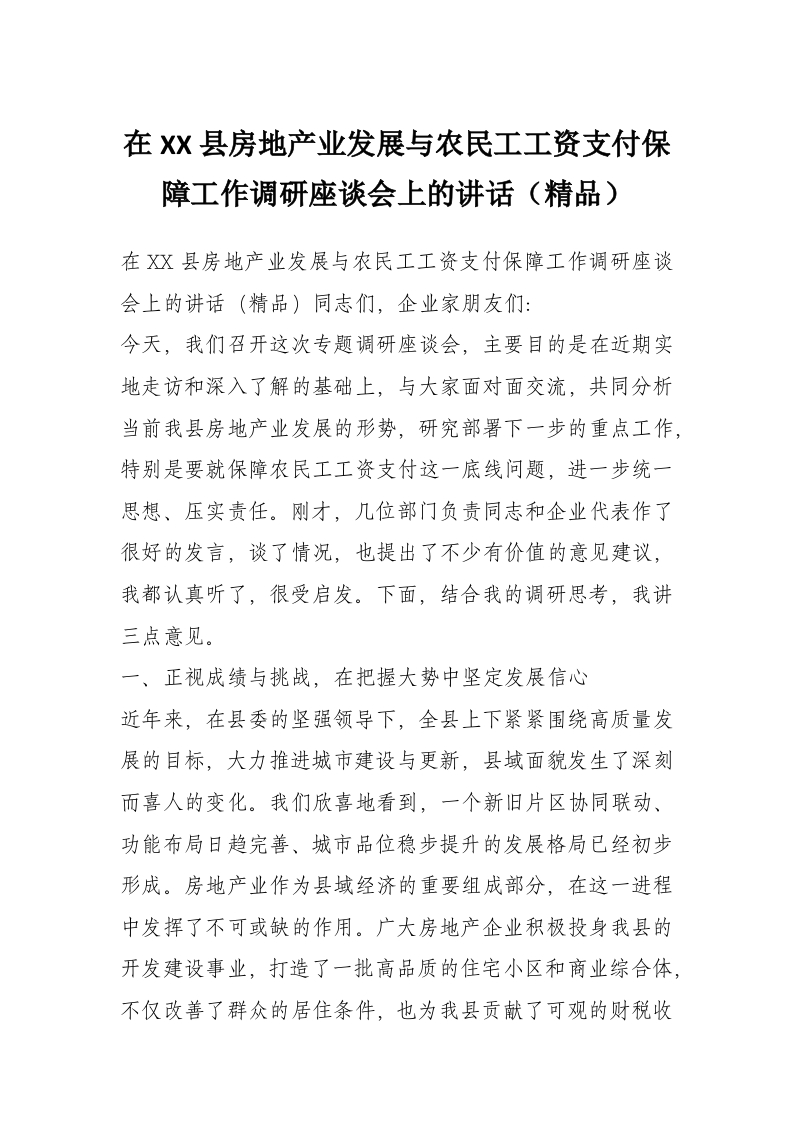 在XX县房地产业发展与农民工工资支付保障工作调研座谈会上的讲话(精品)