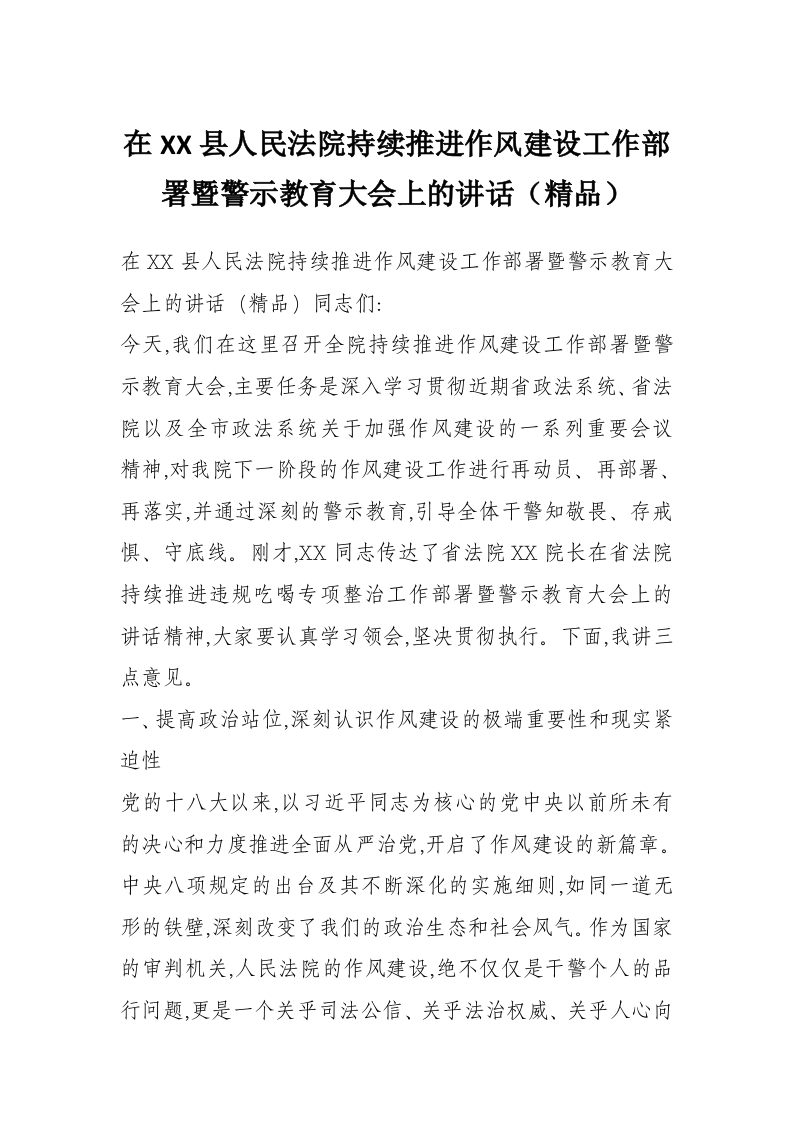 在XX县人民法院持续推进作风建设工作部署暨警示教育大会上的讲话(精品)