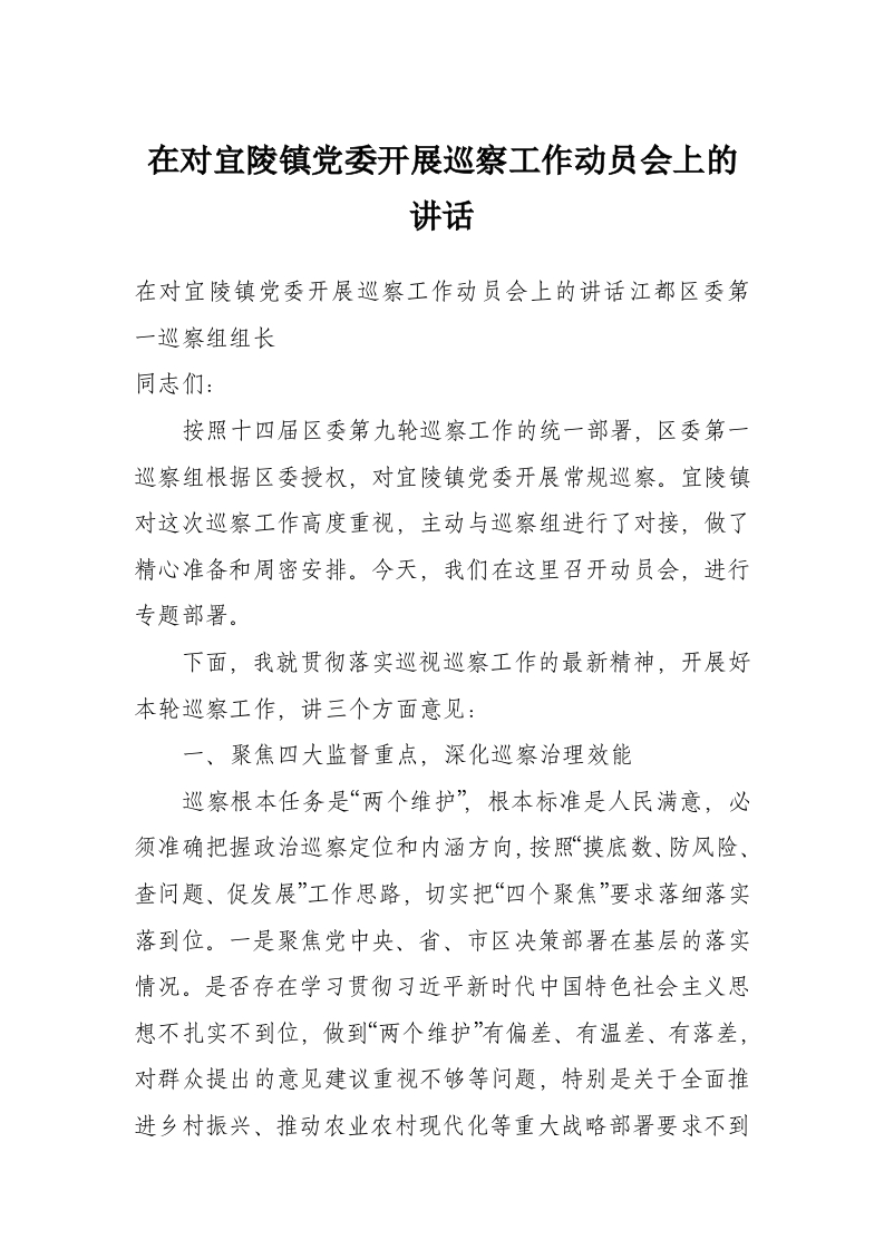 在对宜陵镇党委开展巡察工作动员会上的讲话