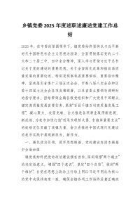 乡镇党委2025年度述职述廉述